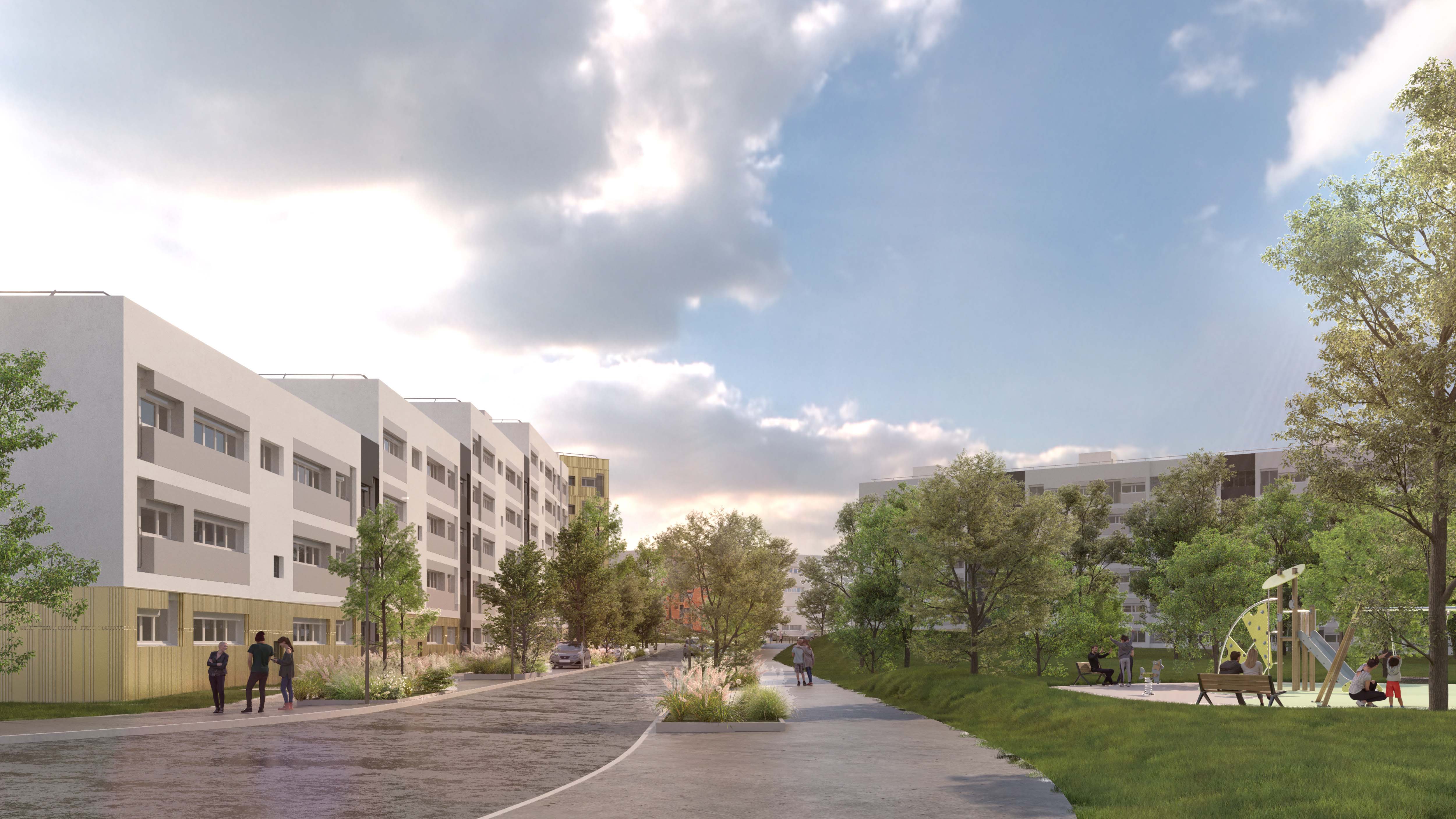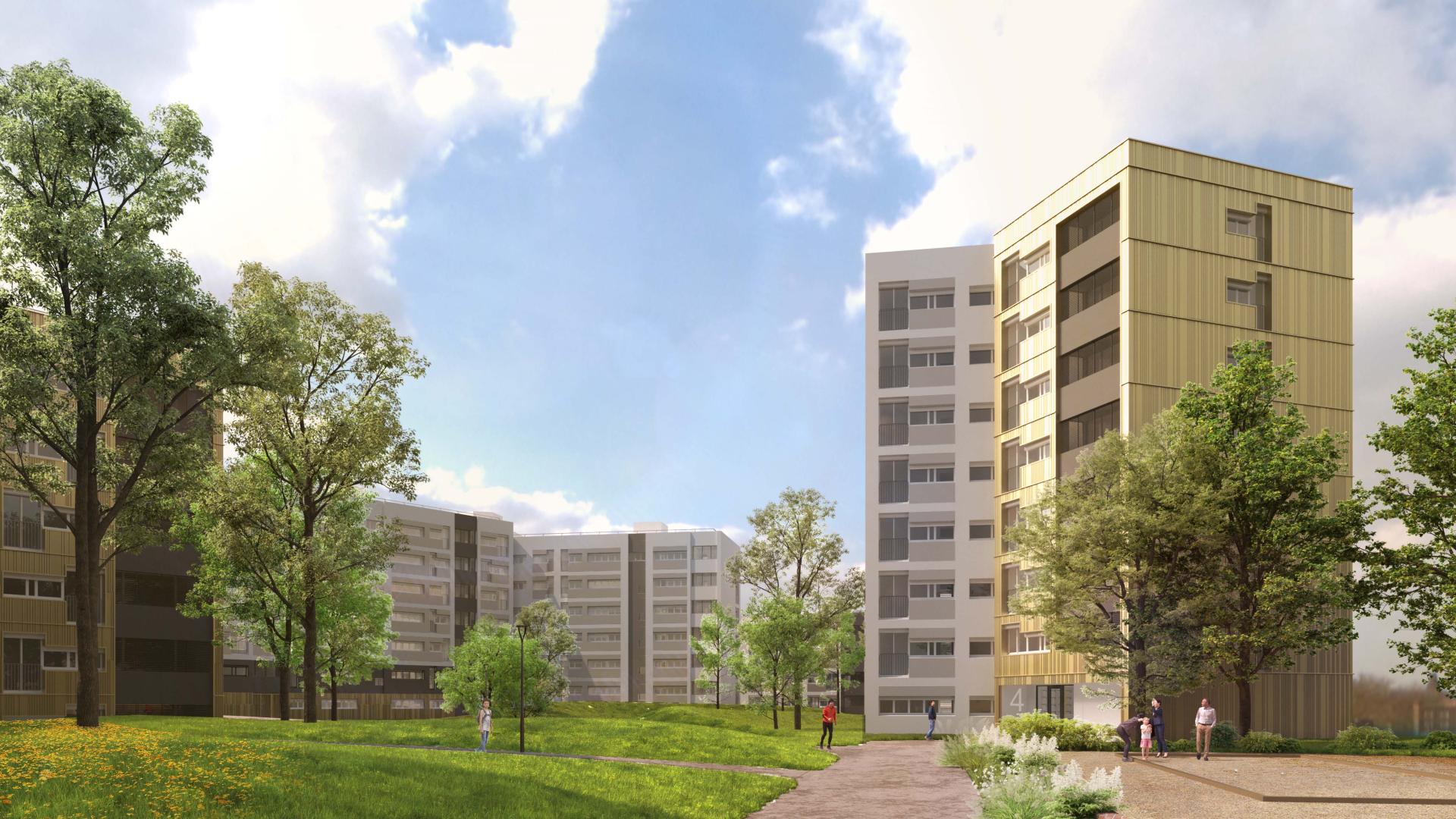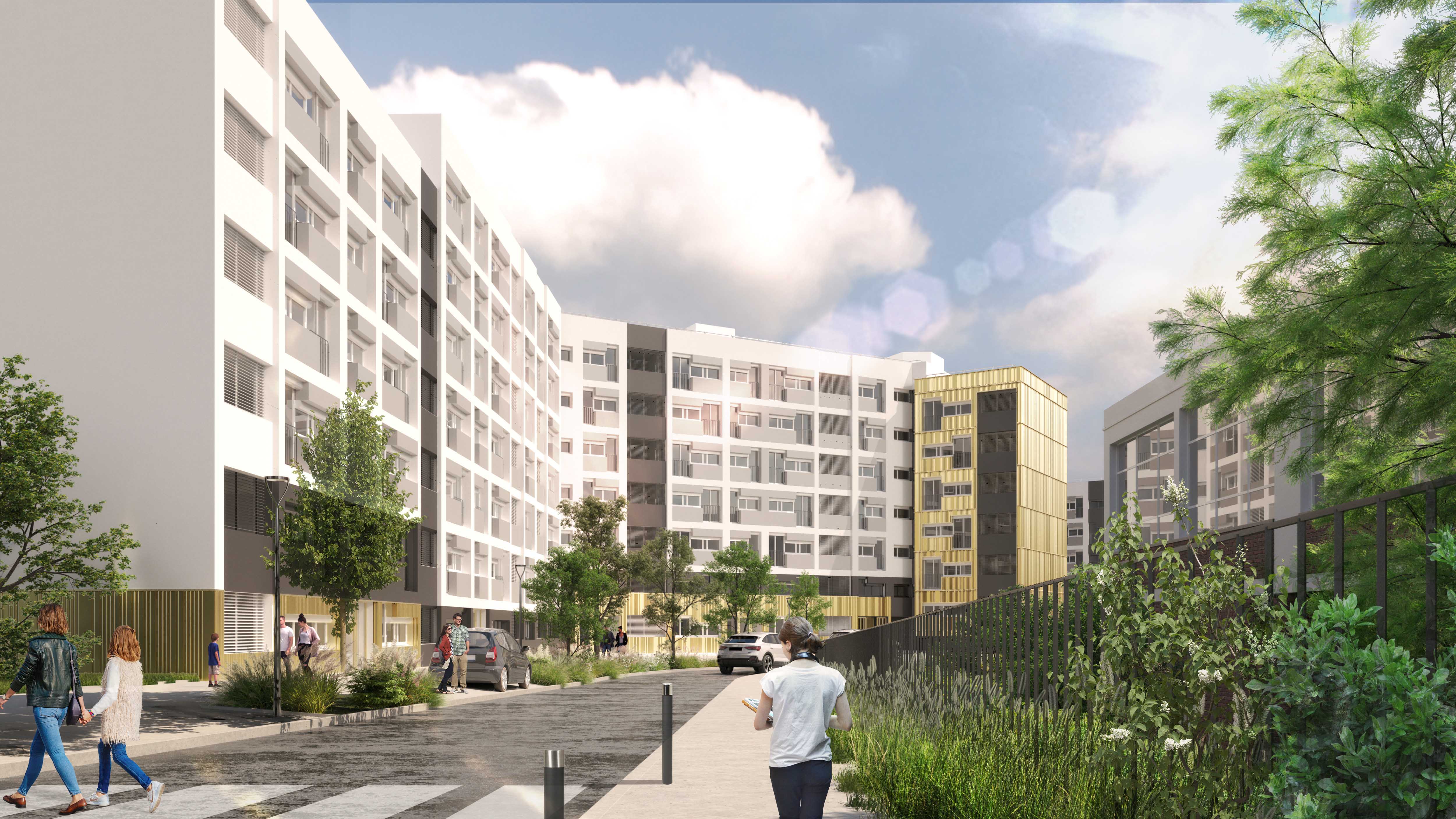 Réhabilitation d'un ensemble immobilier de 379 logements, démolition partielle, restructuration de logements PMR et résidentialisation