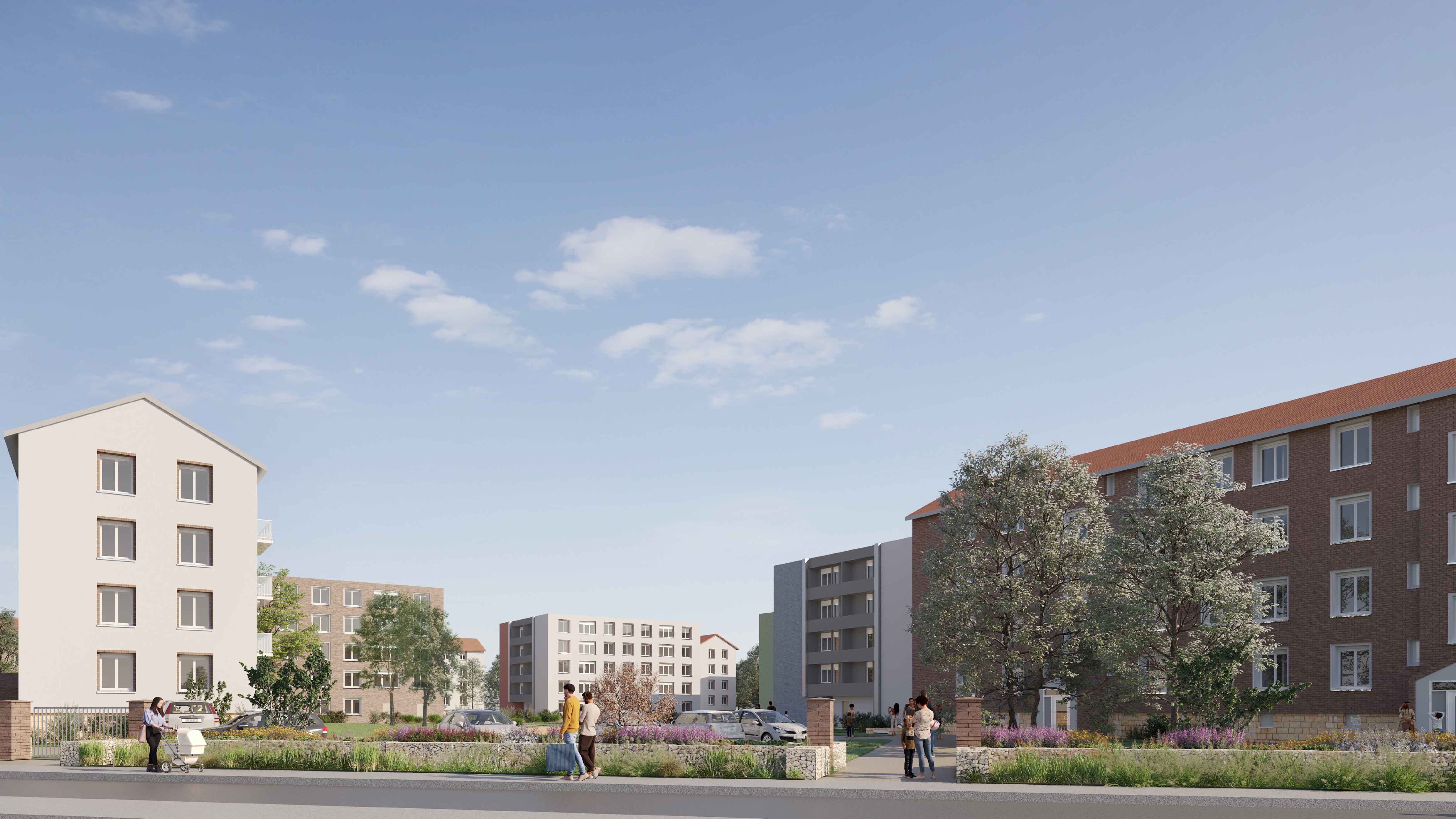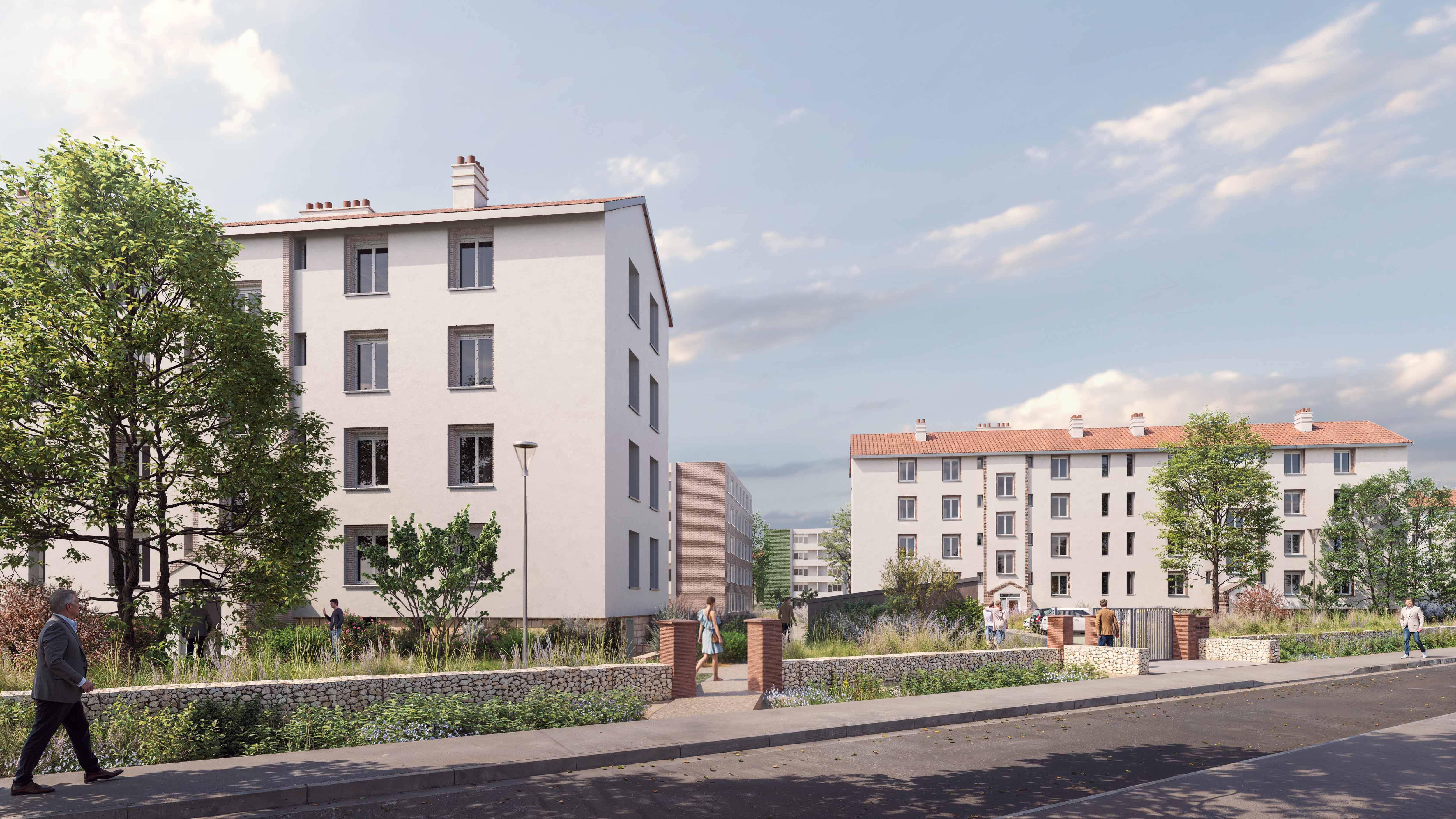 Réhabilitation de 364 logements : amélioration de la qualité architecturale, amélioration du confort thermique et acoustique des logements, ITE, production de chauffage & ECS, sécurité, accessibilité PMR, locaux vélos poussettes, réfection des pièces humides, électricité, adaptation de logements pour les personnes âgées..