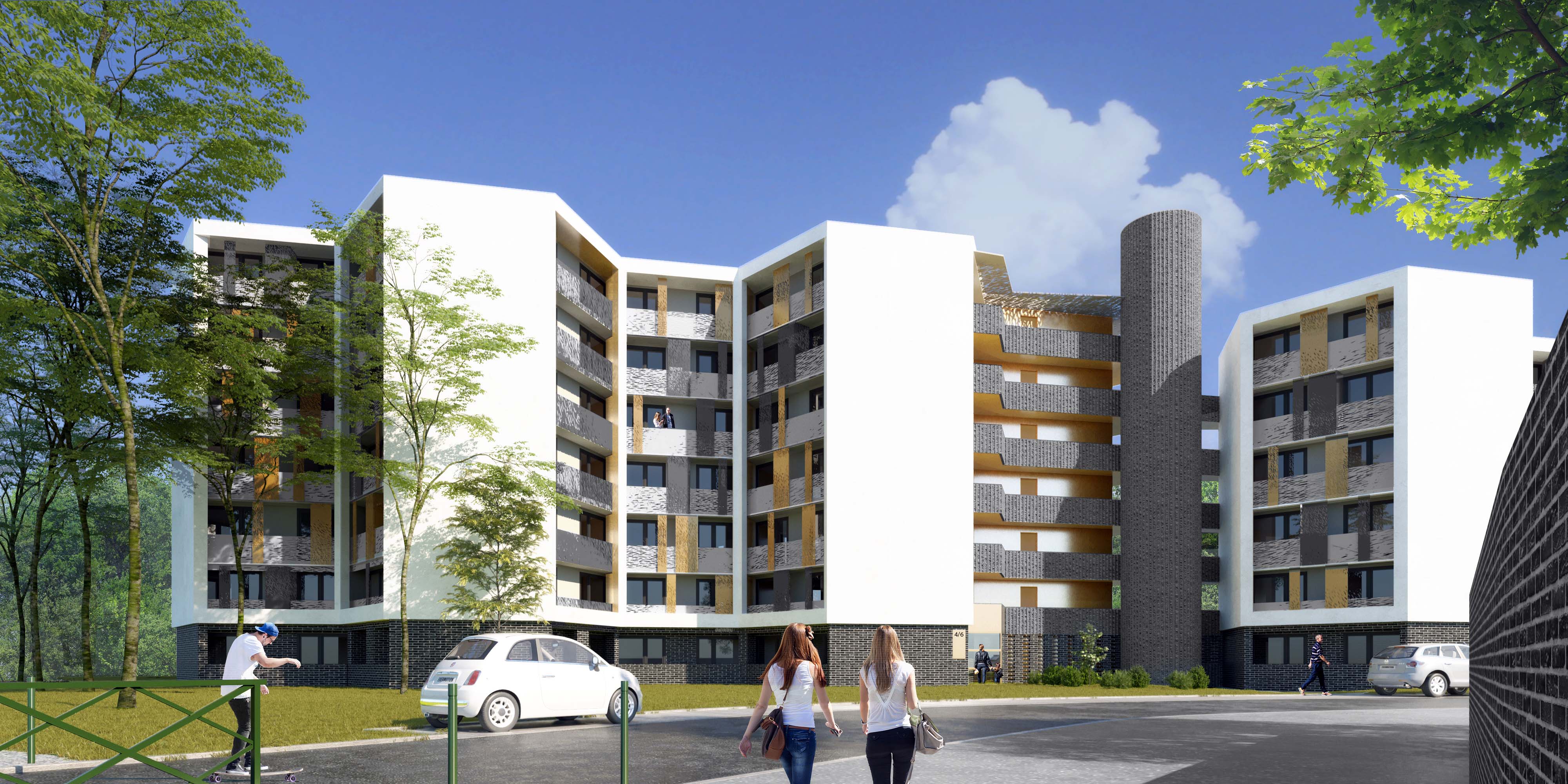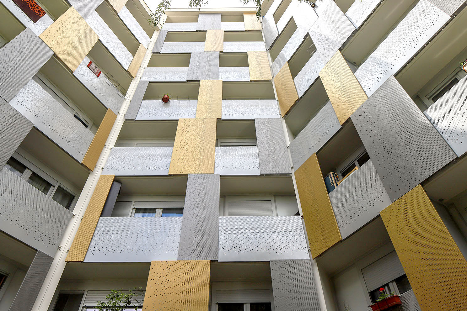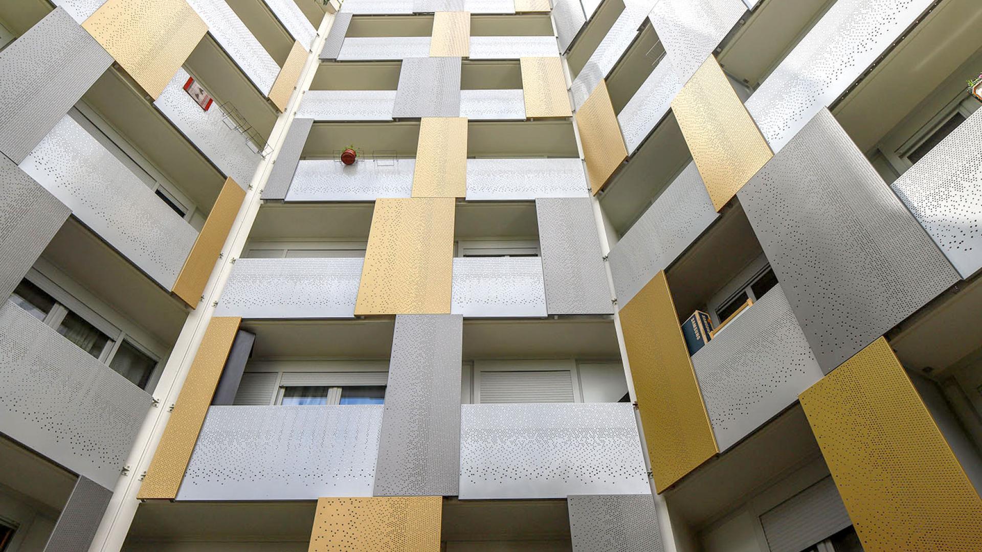 Réhabilitation en site occupé d'un ensemble de 299 logements: amélioration des performances énergétiques, requalification de l'écriture architecturale (travail sur l'ouvert et le fermé), amélioration des parties communes, traitement des balcons.
