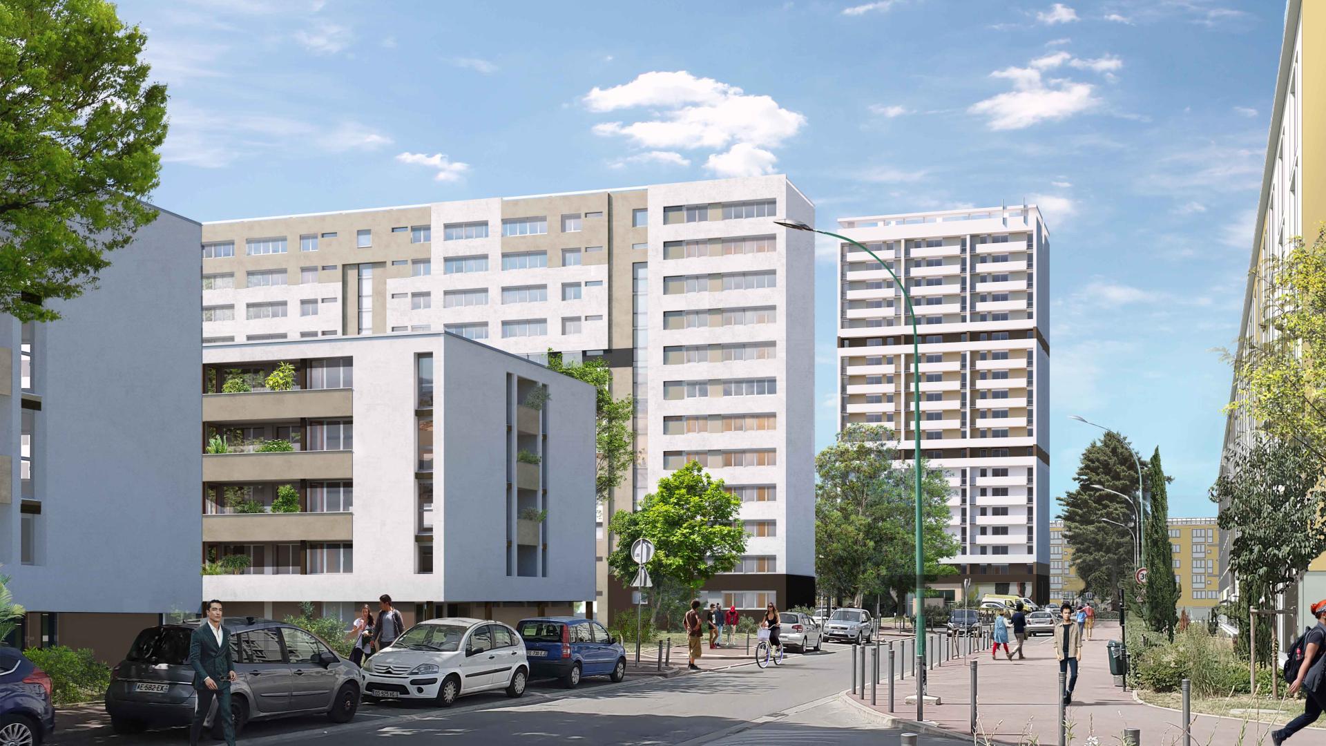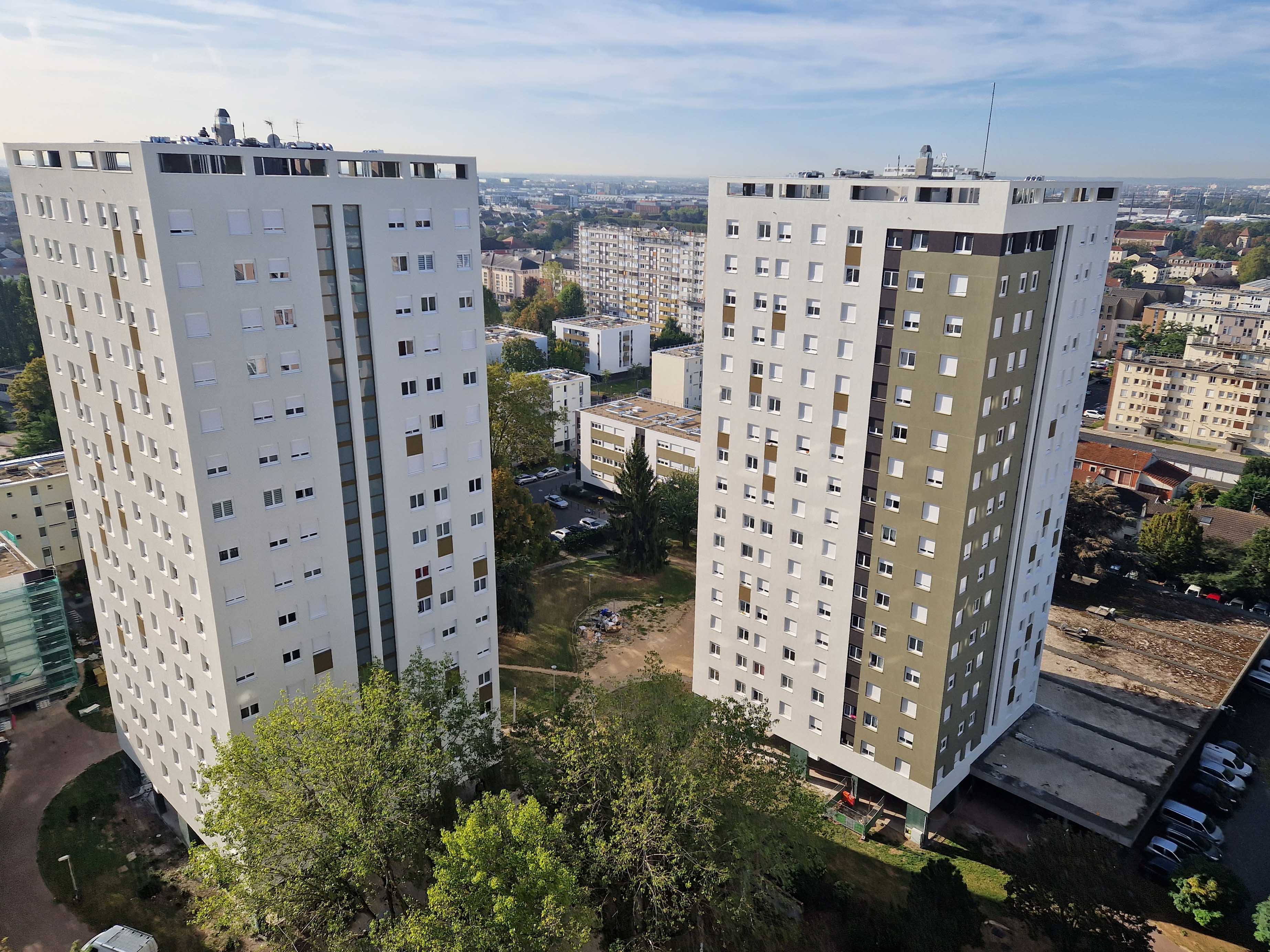 Réhabilitation énergétique de 589 logements en milieu occupé, création de logements PMR et aménagement du centre commercial.